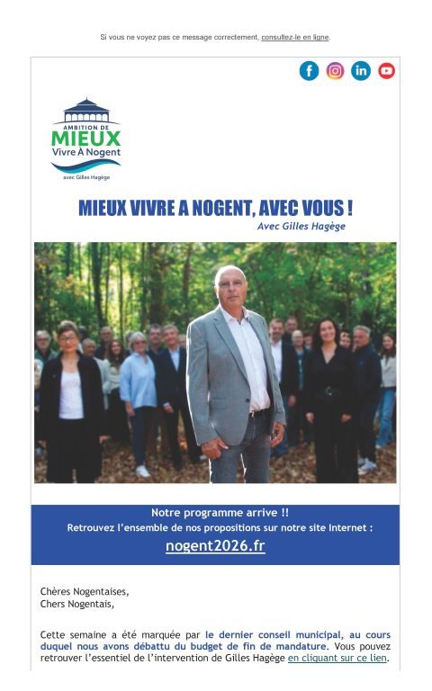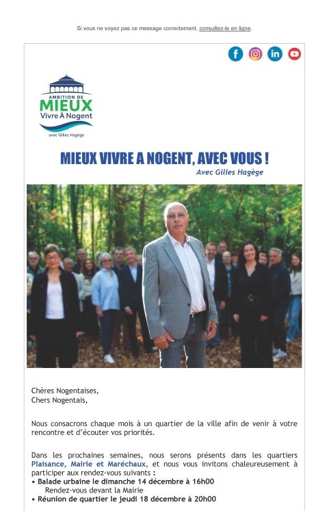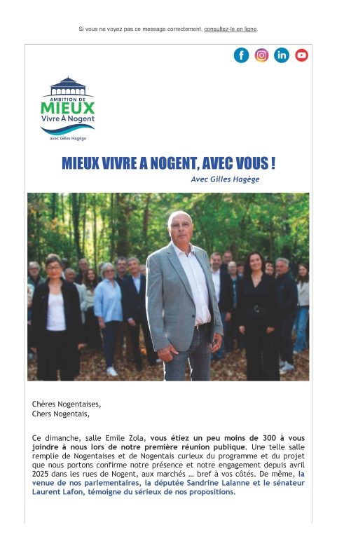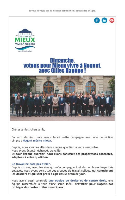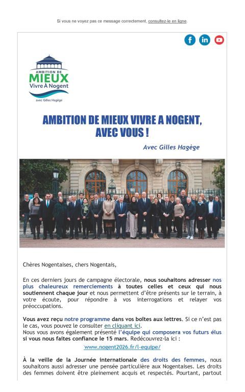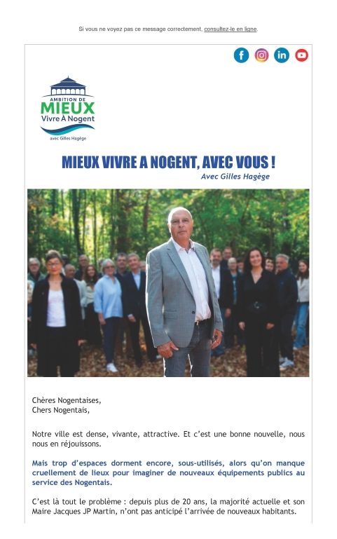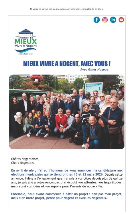 Ce message est clair : les Nogentaises et les Nogentais attendent une nouvelle énergie, une nouvelle méthode et une action municipale résolument tournées vers l’avenir.
