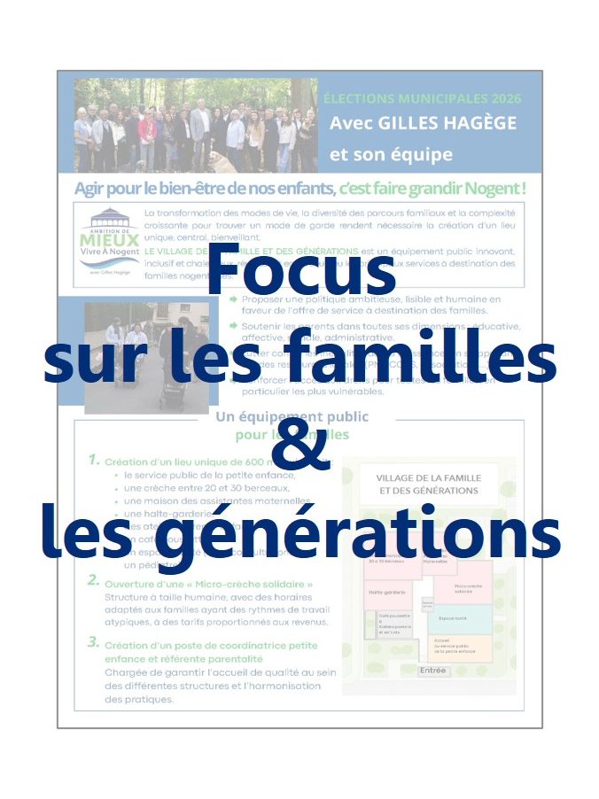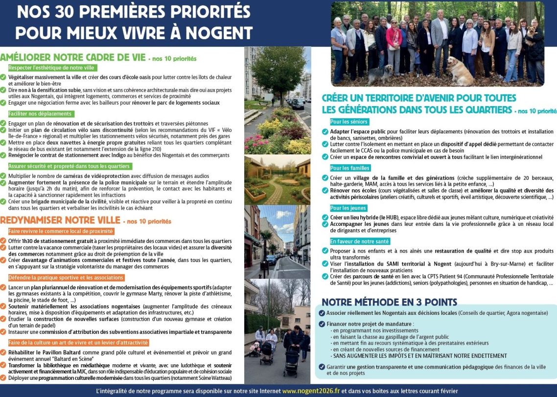 - Santé : Proposer à nos enfants et à nos aînés une restauration de qualité, viser l'installation du SAMI territorial à Nogent, créer des parcours de santé en lien avec la CPTS Patient 94