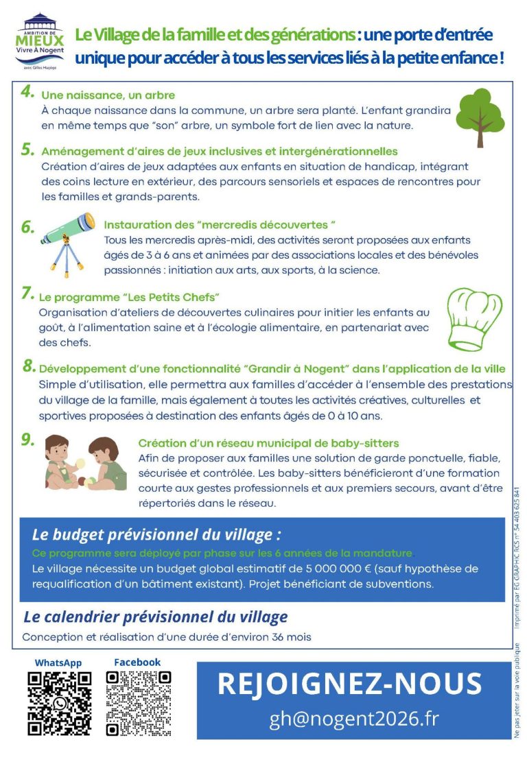 - Petite enfance et jeunesse : reprendre la main sur les services publics essentiels et proposer une véritable offre municipale pour nos jeunes et leurs parents.